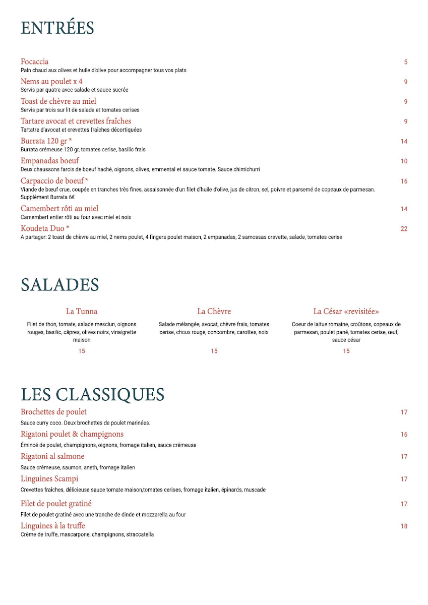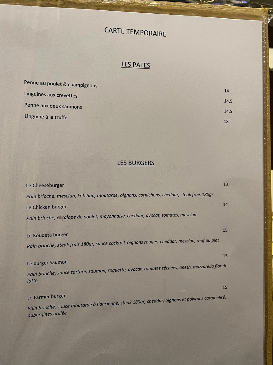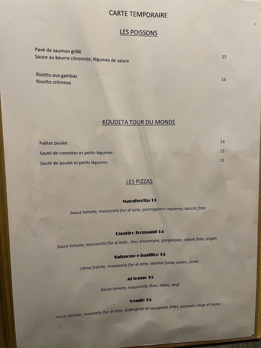 Kou-dé-ta specializes in exquisite French cuisine, offering a varied menu that will tantalize your taste buds. As you step inside, you are enveloped in a cozy ambiance, perfectly complemented by the stylish decor that adds a touch of elegance to your dining experience. The restaurant is designed for comfort and conversation, making it an ideal spot for both intimate dinners and gatherings with friends.